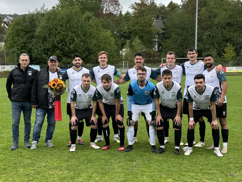links) und seine Firma SPS Elektrotechnik nicht nehmen, die erste Bezirksligamannschaft mit einen neuen Satz „Jubiläumstrikots“ auszustatten.