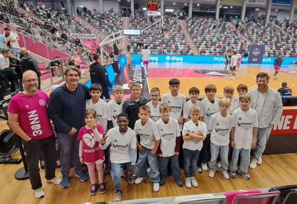 Am Samstag, den 4. Oktober 2025, tauschte die D-Jugend der JSG Zissen das Fußballfeld gegen die Basketballhalle: Gemeinsam mit ihren Trainern Daniel Schmitz und Ben Schäfer machten sich 16 Kinder auf den Weg nach Bonn, um ein Heimspiel der Telekom Baskets live in der Halle mitzuerleben.